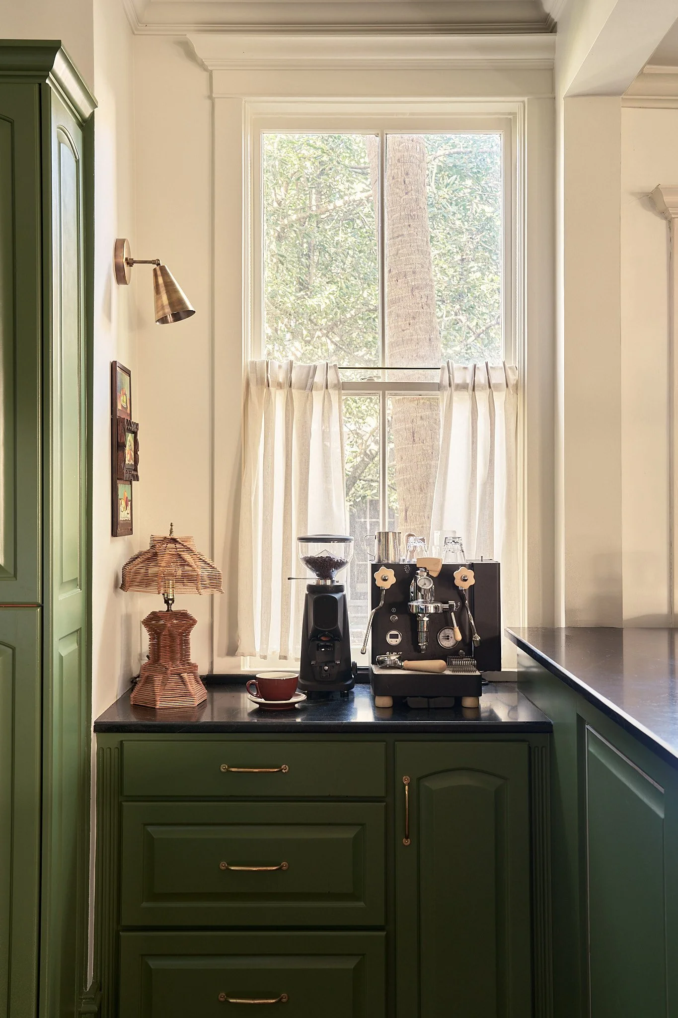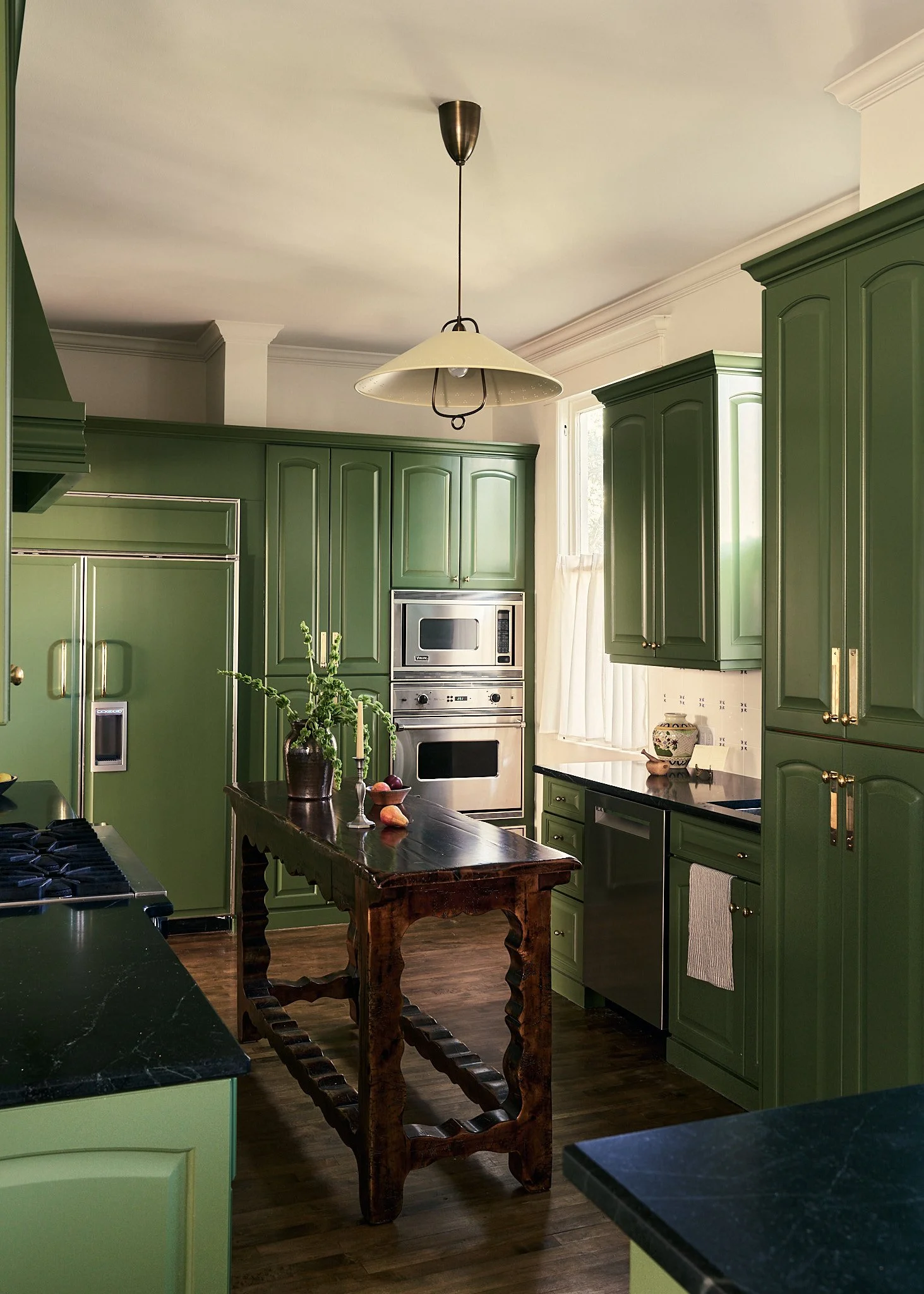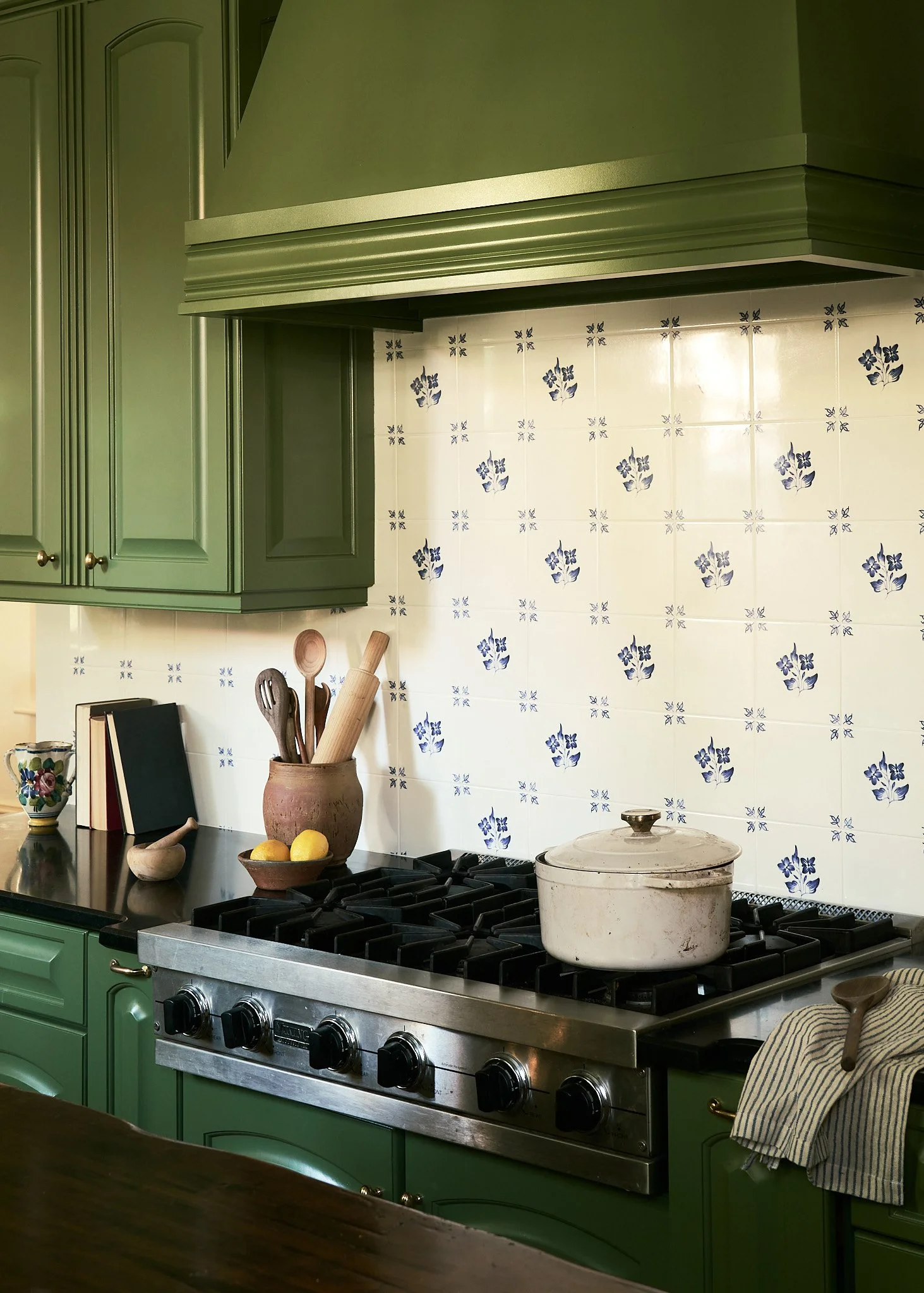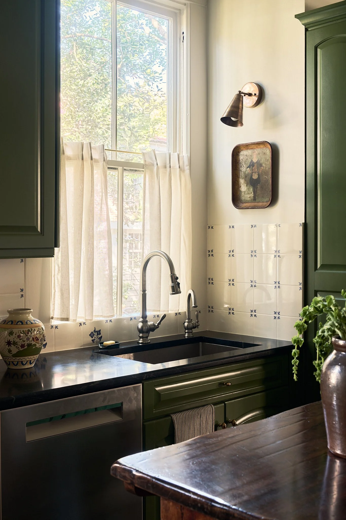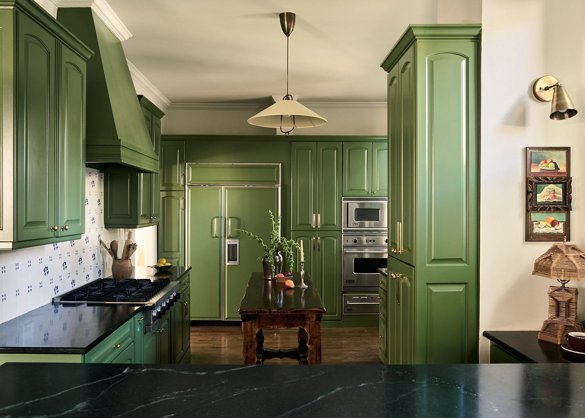 A historic 1700's home in Charleston SC. We wanted this project to feel patina’d and nostalgic, honoring its traditional architecture and layering in hand-painted vintage Delft tiles that nod to its history. At the same time, we introduced whimsical elements and ensured the space functioned seamlessly for modern living. The pop of drenched green was inspired by the street the home sits on, creating a perfect segue between old-world charm and contemporary character.